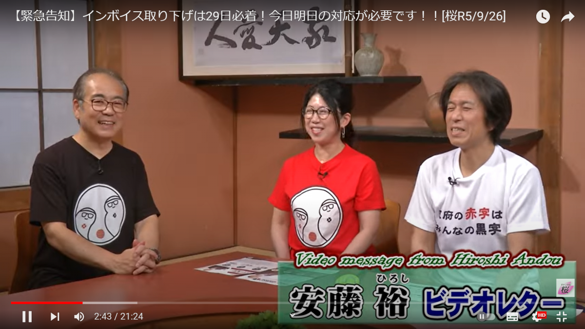 「チャンネル桜にゲスト出演」【緊急告知】インボイス取り下げは29日必着!今日明日の対応が必要です!![桜R5/9/26]