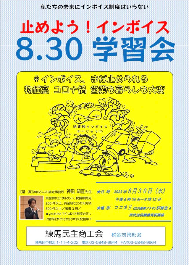 8月30日「消費税・インボイス学習会」in練馬!開催!