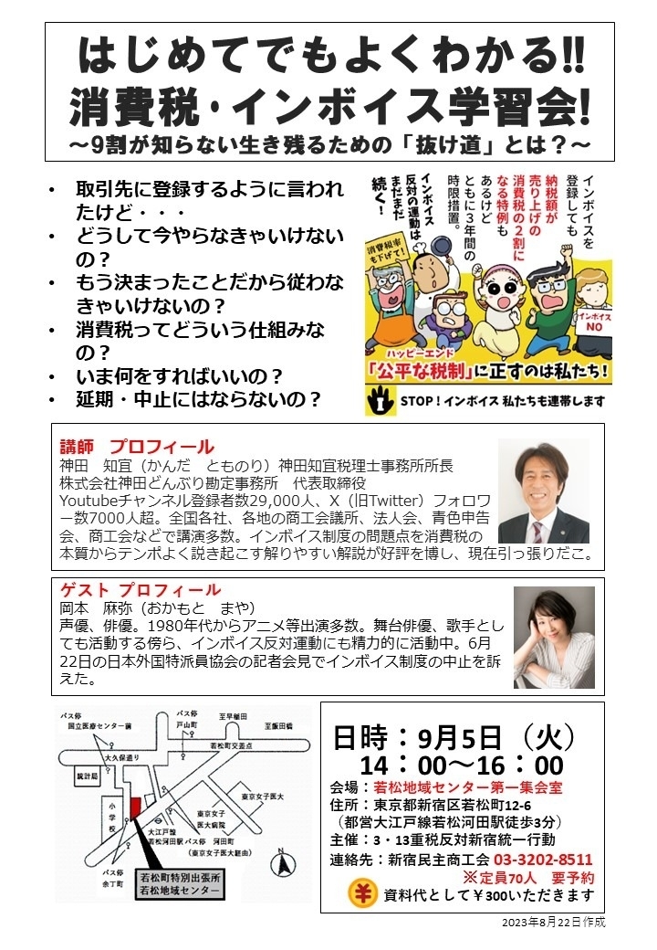 9月5日「消費税・インボイス学習会」in新宿 開催!